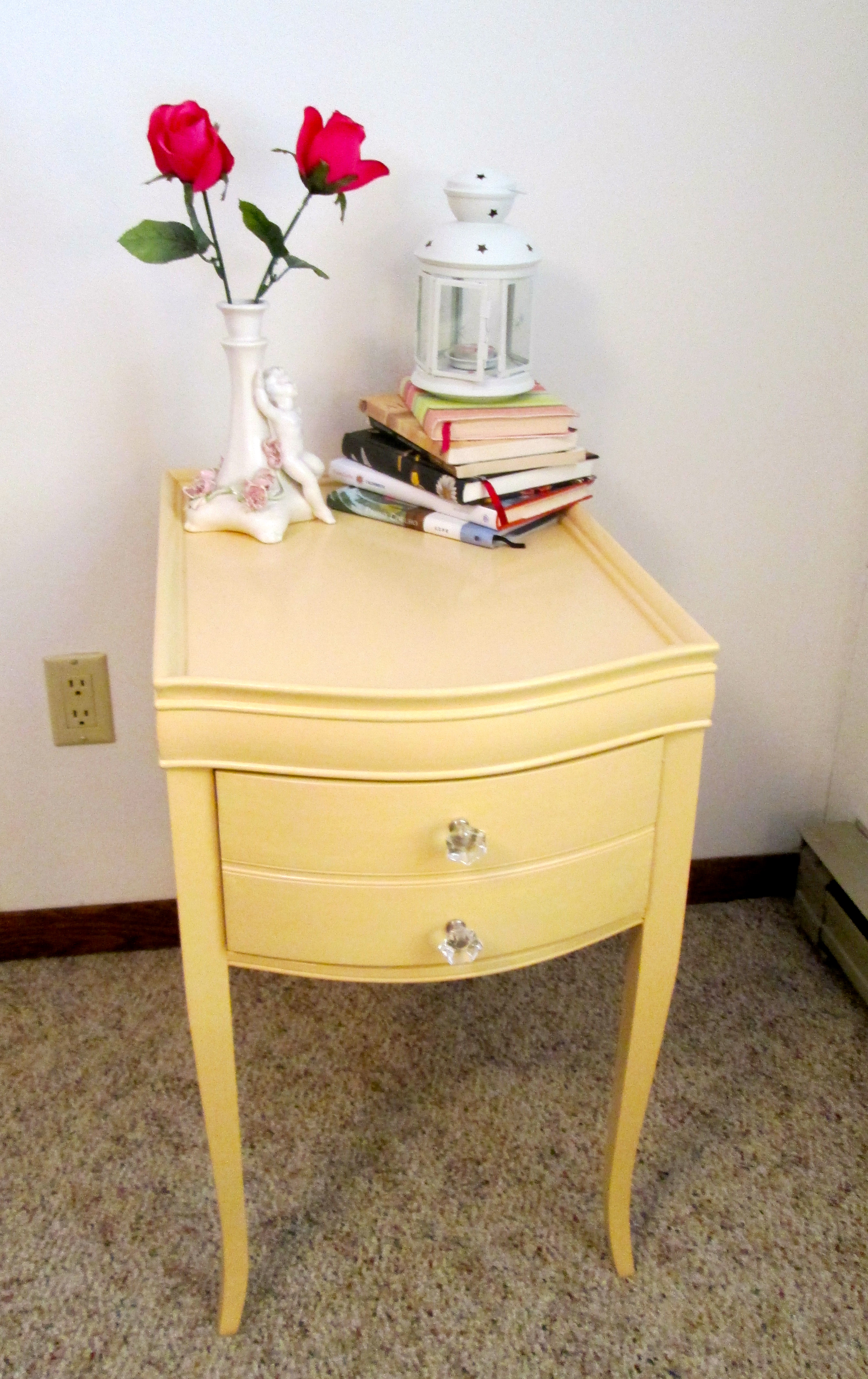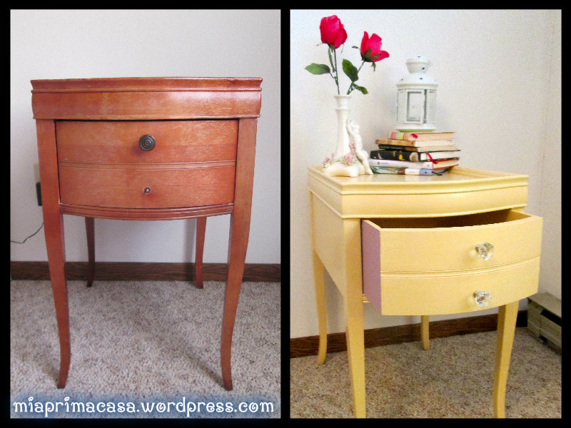 My aunt and uncle generously gave my sister and me some old furniture of theirs for us to use in our new apartment. This sweet little nightstand was one item they gave us. I loved the shape and size of the night stand but wanted to update it with a fresh look.