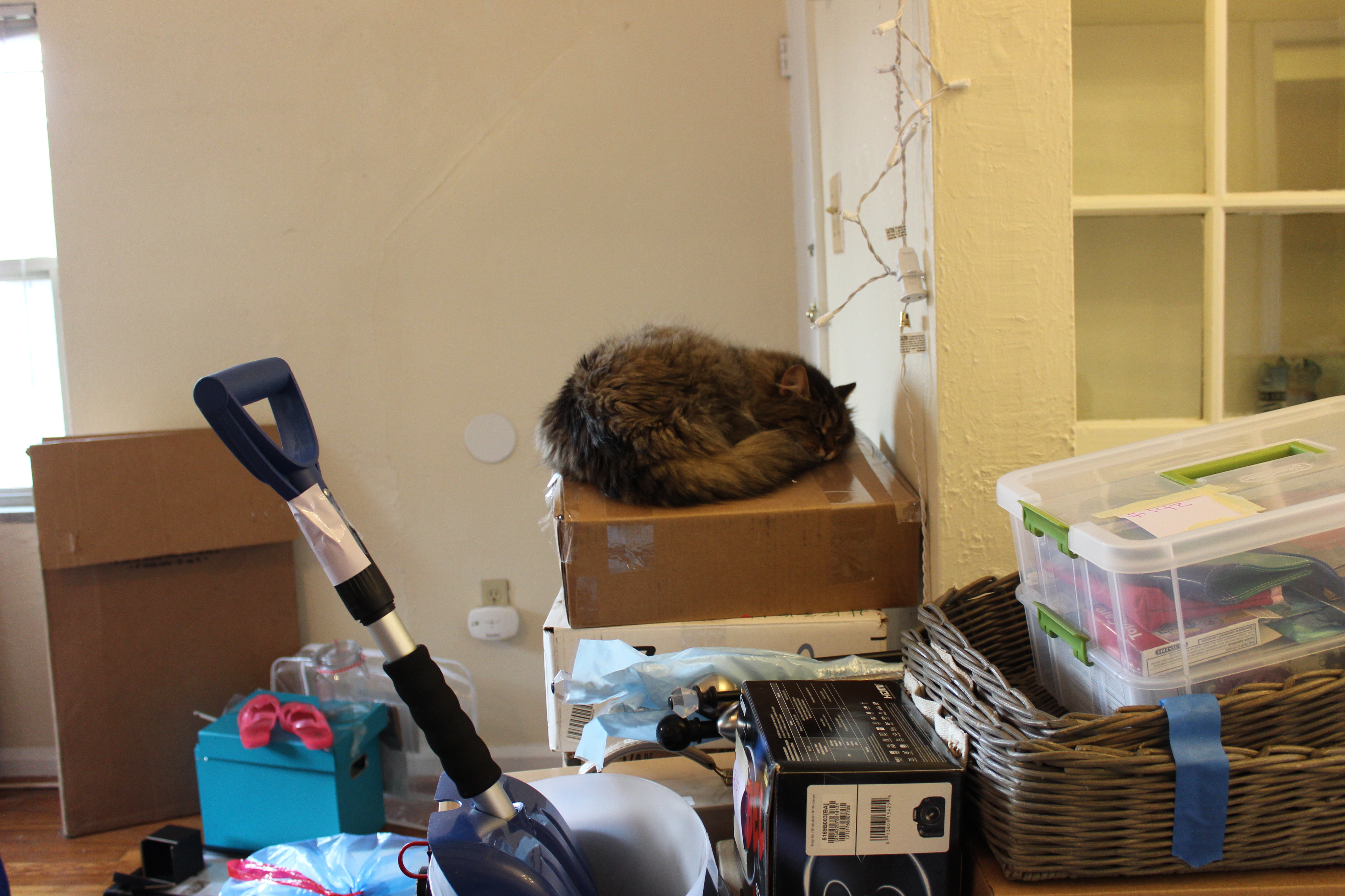 1. Using my cat’s leash. Naya Cat was so freaked out by the whole moving business that she wouldn’t get into her carry case, and I pulled out her leash for its first-time use. Which meant I spent eight hours with her roaming my car after she escaped from her collar. Seriously, I don’t know how we didn’t get into a car accident…